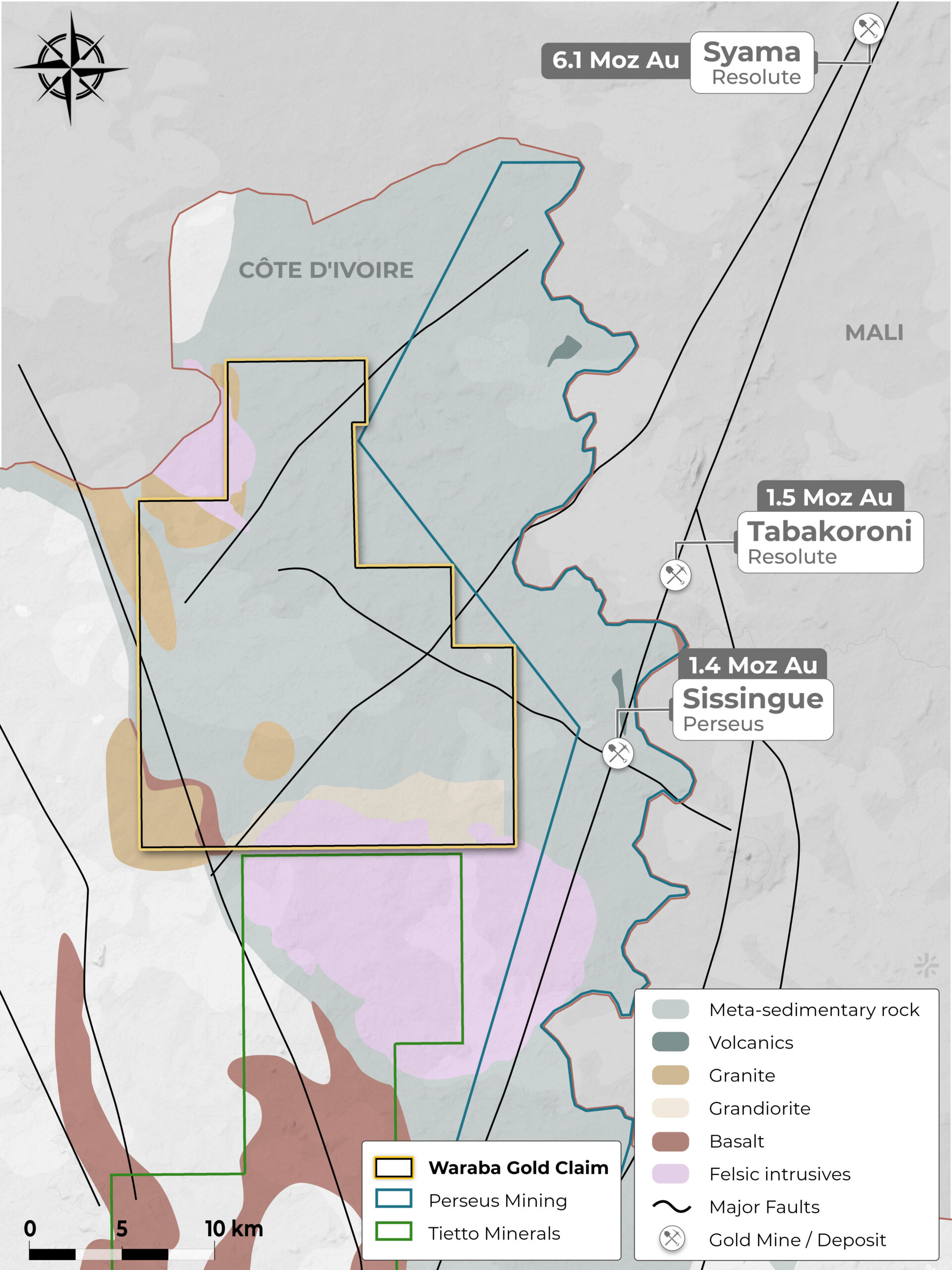 Initial field reconnaissance and mapping indicate multiple structurally controlled target zones with artisanal activity nearby.