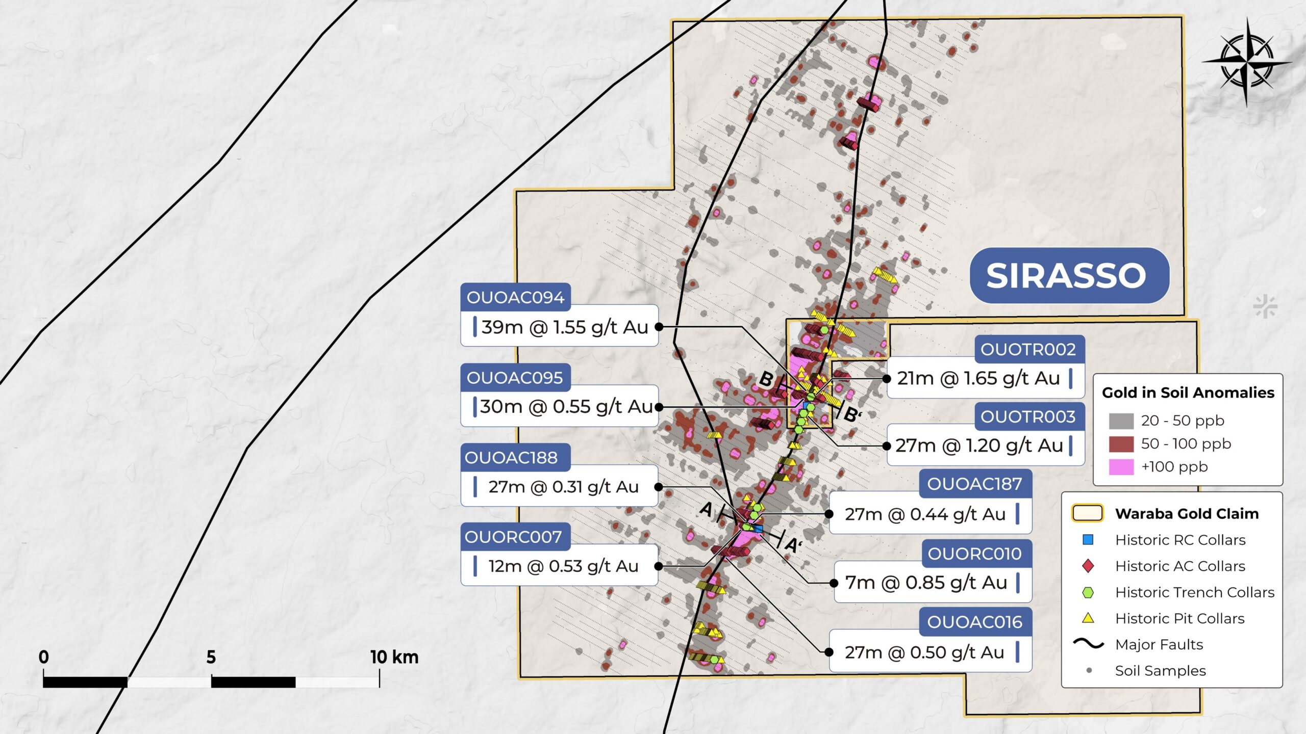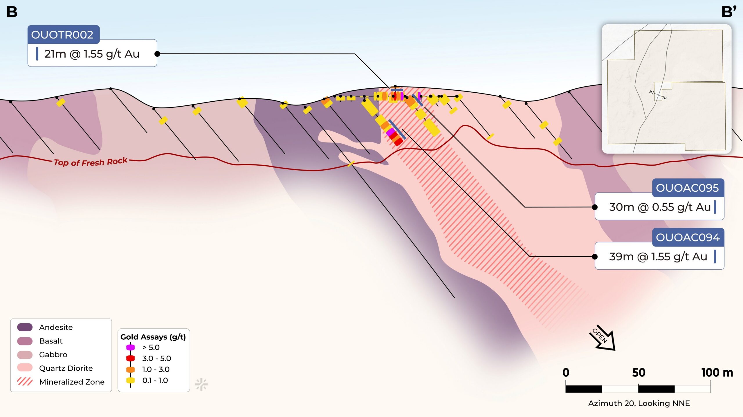 Confirm and extend high-grade zones along the Ouobolo corridor. Test strike and dip continuity of mineralized structures. Generate data for potential resource modelling and future economic evaluation